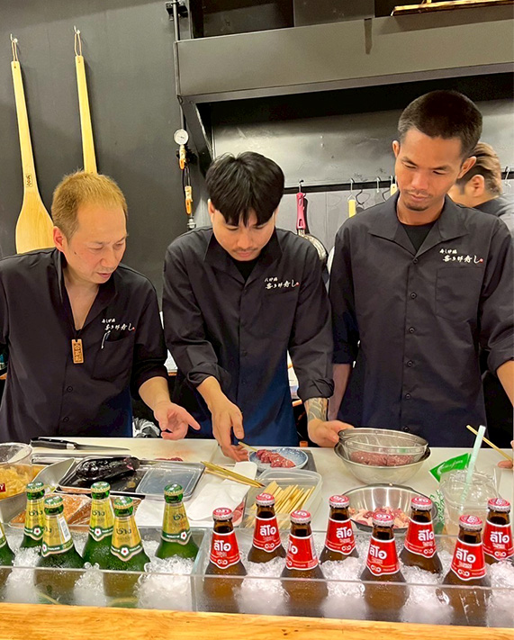 できたてのおにぎり、焼き鳥、香ばしい焼き物など、人気のメニューを豊富に取り揃えた日本食レストランです。美味しい出汁の効いた熱々のおでんや、タイでは希少な名物料理の釜飯は、温かくフレンドリーな雰囲気の中で、香ばしく炊き上げられます。